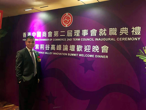 典禮上,香港中國商會董事會、理事會主席陳經緯致辭表示,商會自2009年成立以來,已凝聚多位來自香港、中國內地以及海外華人企業家和專業人士。商會先后舉辦了中國海外投資年會、香港大講堂等系列活動,為“一帶一路”建設和全面實施國家對外開放新格局,做出了實際貢獻。同時,為了響應國家“十三五”規劃,商會發起成立了“紫荊谷創新創業發展中心”,支持港澳中小微企業和青年人在內地發展創業,支持內地與港澳開展創新及科技合作,積極推動“大眾創業,萬眾創新”。