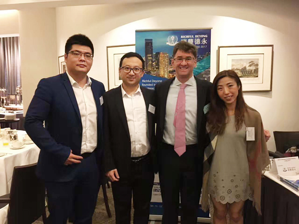 瑞豐德永高層與香港創(chuàng)業(yè)及私募投資協(xié)會主席馬恩瑞(Eric Mason)先生(右二)合影