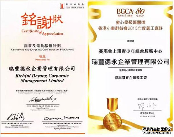 ? 榮獲香港公益金頒發的銘謝狀