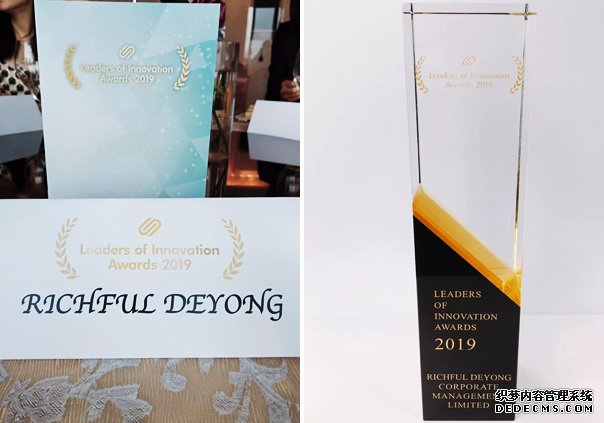 瑞豐德永獲授“Leaders of Innovation Awards 2019”榮譽獎杯