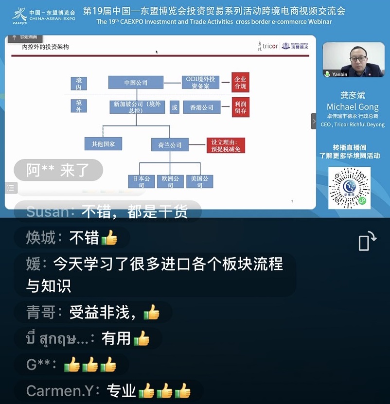 卓佳瑞豐德永CEO龔彥斌先生先后圍繞“全球監(jiān)管局勢下的跨境電商財稅痛點”、“跨境進(jìn)口電商′三單對碰′”、“跨境電商財稅痛點與合規(guī)考量”以及“RCEP主要國家商業(yè)實體設(shè)立指南”等核心內(nèi)容展開了深入淺出的分享,干貨滿滿,參會企業(yè)家們紛紛表示受益良多。