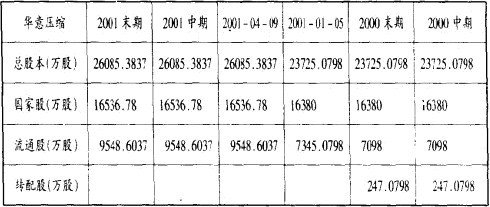 1、華意壓縮的股本結構
