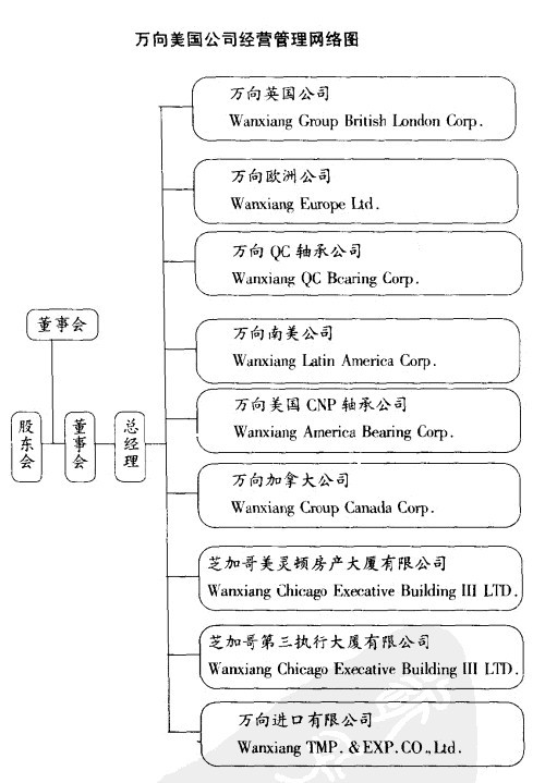 萬向集團下屬四大公司:萬向集團公司、萬向錢潮股份有限公司(000559)、上海萬向投資有限公司和萬向美國公司。