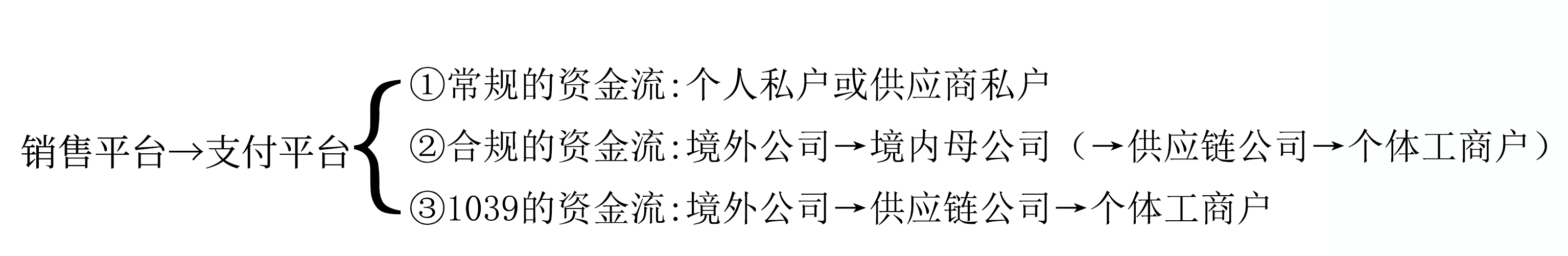 1039的資金流:銷售平臺→支付平臺→境外公司→供應鏈公司→個體工商戶;
