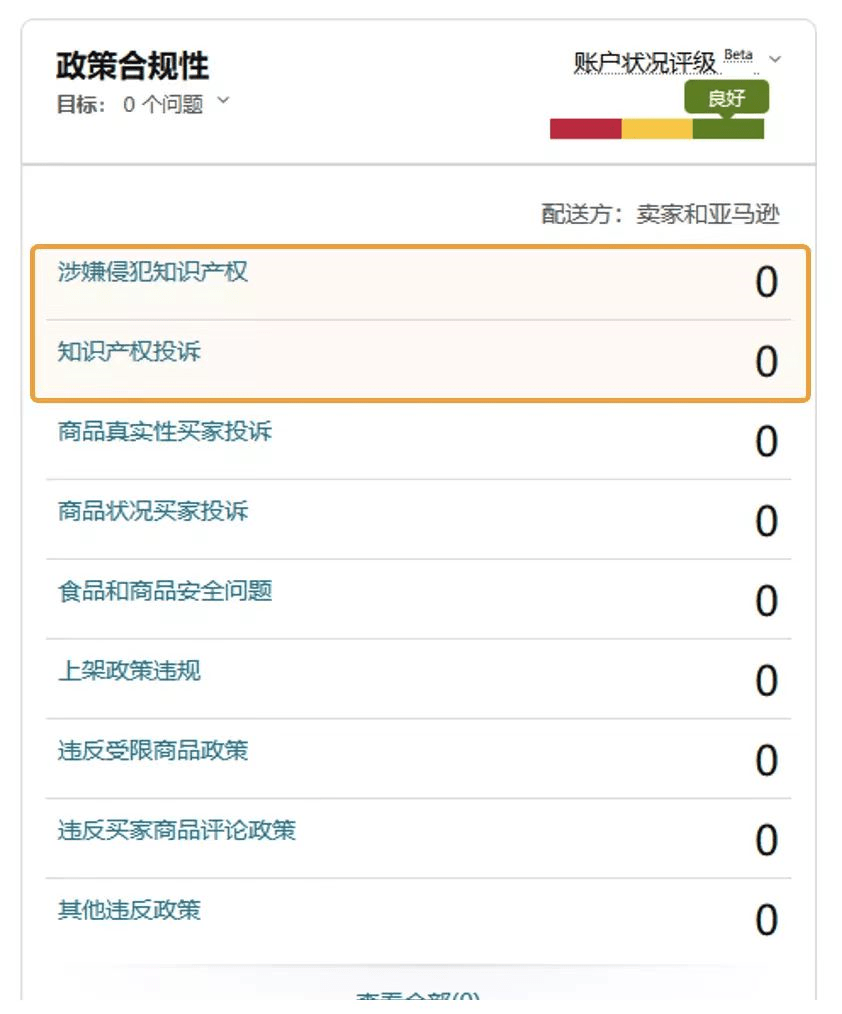 通過“商品政策合規(guī)性”頁面,您可以看到違反亞馬遜政策的商品記錄。當(dāng)您看到“涉嫌侵犯知識(shí)產(chǎn)權(quán)” 、 “知識(shí)產(chǎn)權(quán)投訴” 兩欄內(nèi)容有警示,則意味著可能存在侵權(quán)問題。接下來您可以對(duì)該頁面中顯示的違規(guī)問題進(jìn)行申訴。