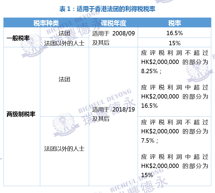 香港政府為了提升國際競爭力及促進經發展,在維持原有一般法團適用的稅率16.5%及法團以外的業務適用的標準稅率15%的基礎上,自2018年4月1日開始實行利得稅級兩級制。