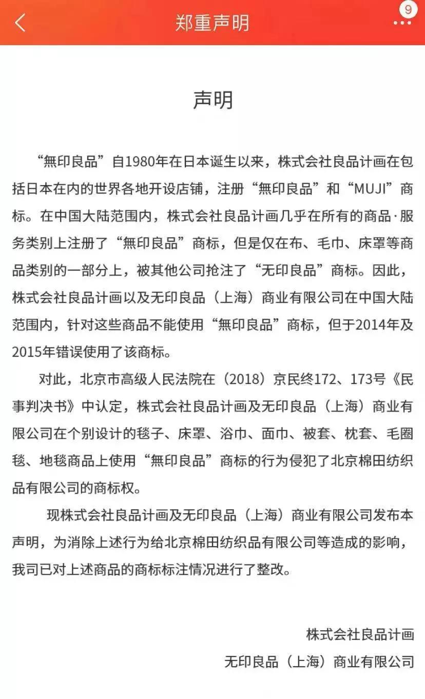 中國(guó)青年報(bào)搜索發(fā)現(xiàn),在天貓“無(wú)印良品MUJI官方旗艦店”,日本無(wú)印良品已作出相關(guān)聲明。