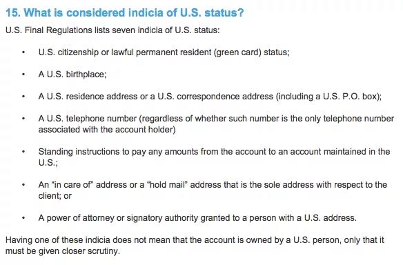 ③用美國護照在美國境外開戶,或在開戶時填寫美國聯絡資料者;