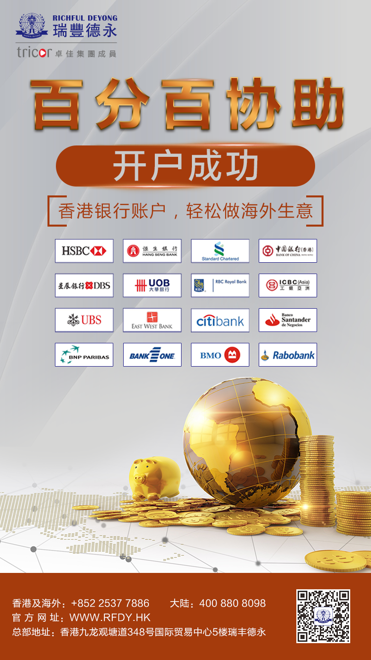 瑞豐德永擁有多年開戶經驗及與香港銀行有良好合作關系,香港公司及離岸公司最快可以做到一兩星期就可以成功開戶,如有需要可與我們取得聯絡。
