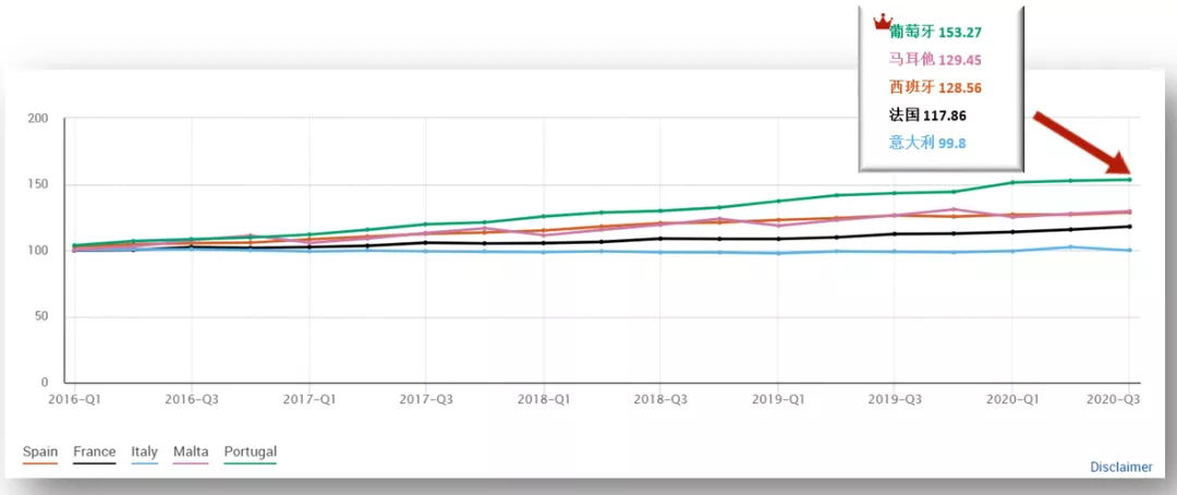 近年來,我們可以通過多方數(shù)據(jù)看到,國際投資者不斷涌入葡萄牙,對(duì)其認(rèn)可度也是一路攀升,據(jù)仲量聯(lián)行報(bào)告中數(shù)據(jù)顯示,葡萄牙已成為國際資本市場青睞的投資目的地之一。此外,根據(jù)歐盟統(tǒng)計(jì)局?jǐn)?shù)據(jù),葡萄牙房產(chǎn)指數(shù)5年間上漲超過50%!