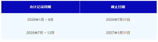 1. 半年度會計(jì)記錄 (Bi-annual accounting records) – 上半年截止于七月,下半年截止于次年一月